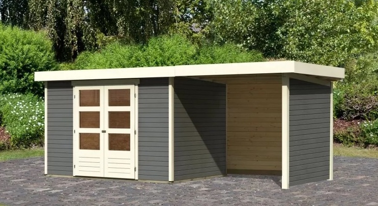 dřevěný domek KARIBU ASKOLA 4 + přístavek 240 cm včetně zadní a boční stěny (92072) terragrau