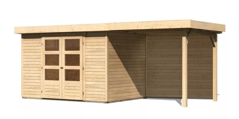 dřevěný domek KARIBU ASKOLA 4 + přístavek 240 cm včetně zadní stěny (9177) natur