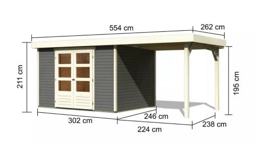 dřevěný domek KARIBU ASKOLA 5 + přístavek 240 cm (9154) terragrau