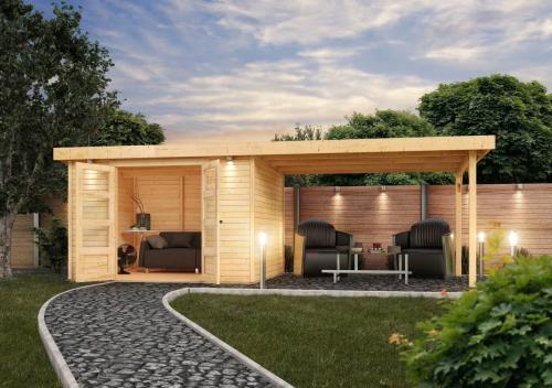 dřevěný domek KARIBU ASKOLA 5 + přístavek 280 cm (77736) natur