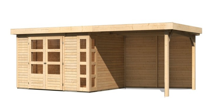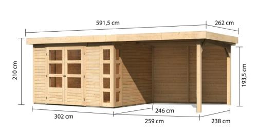 dřevěný domek KARIBU KERKO 5 + přístavek 280 cm včetně zadní stěny (9206) natur