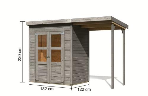 dřevěný domek KARIBU MERSEBURG 2 + přístavek 166 cm (9408) světle šedý