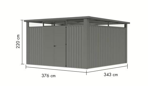 Kovový zahradní domek, š 376 x d 343 x v 220 cm, barva šedá.