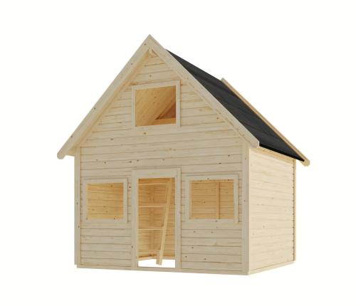 Náš kvalitný herný domček KARIBU KALLE je vyrobený z 19 mm hrubých profilov zo severského smreka - odolného dreva pochádzajúceho zo severu Európy. Vďaka pomalému rastu má toto drevo hustejšie letokruhy, a preto je tvrdšie a odolnejšie. Domček má atraktívnu a praktickú sedlovú strechu, ktorá chráni vaše deti pred dažďom aj slnkom. Výška bočnej steny je 141 cm, celková výška až po vrchol strechy je 253 cm. Deti do domčeka vstupujú výrezom o rozmeroch š 47,5 x v 97,5 cm. Zvláštnosťou domčeka KALLE je druhé poschodie, vďaka ktorému sa deti môžu hrať na dvoch poschodiach. To im prináša viac priestoru, zábavy a možností pre dobrodružstvo. Všetky drevené časti dodávame v prírodnom stave - bez chemických náterov. Môžete si tak byť istí, že materiál neobsahuje žiadne známe škodlivé látky a je bezpečný pre deti. Detské ihrisko KARIBU KALLE má samozrejme certifikát TÜV Nord overujúci bezpečnosť výrobku (GS) podľa DIN EN 71-1, DIN EN 71-3, DIN EN 71-8 a AfPS GS 2014.