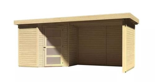 drevený domček KARIBU SCHWANDORF 3 + prístavok 280 cm vrátane zadnej a bočnej steny (77744) natur