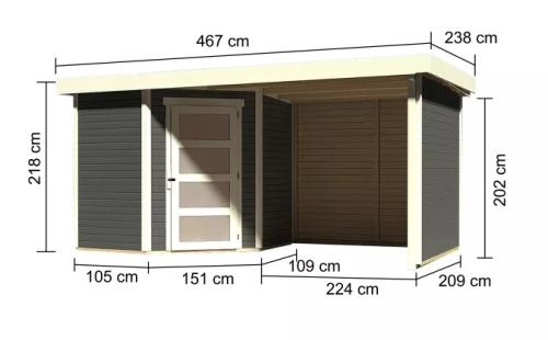 drevený domček KARIBU SCHWANDORF 3 + prístavok vrátane zadnej a bočnej steny 240 cm (77741) terragrau