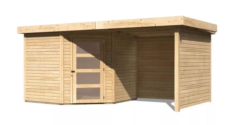 drevený domček KARIBU SCHWANDORF 5 + prístavok 240 cm vrátane zadnej a bočnej steny (77748) natur