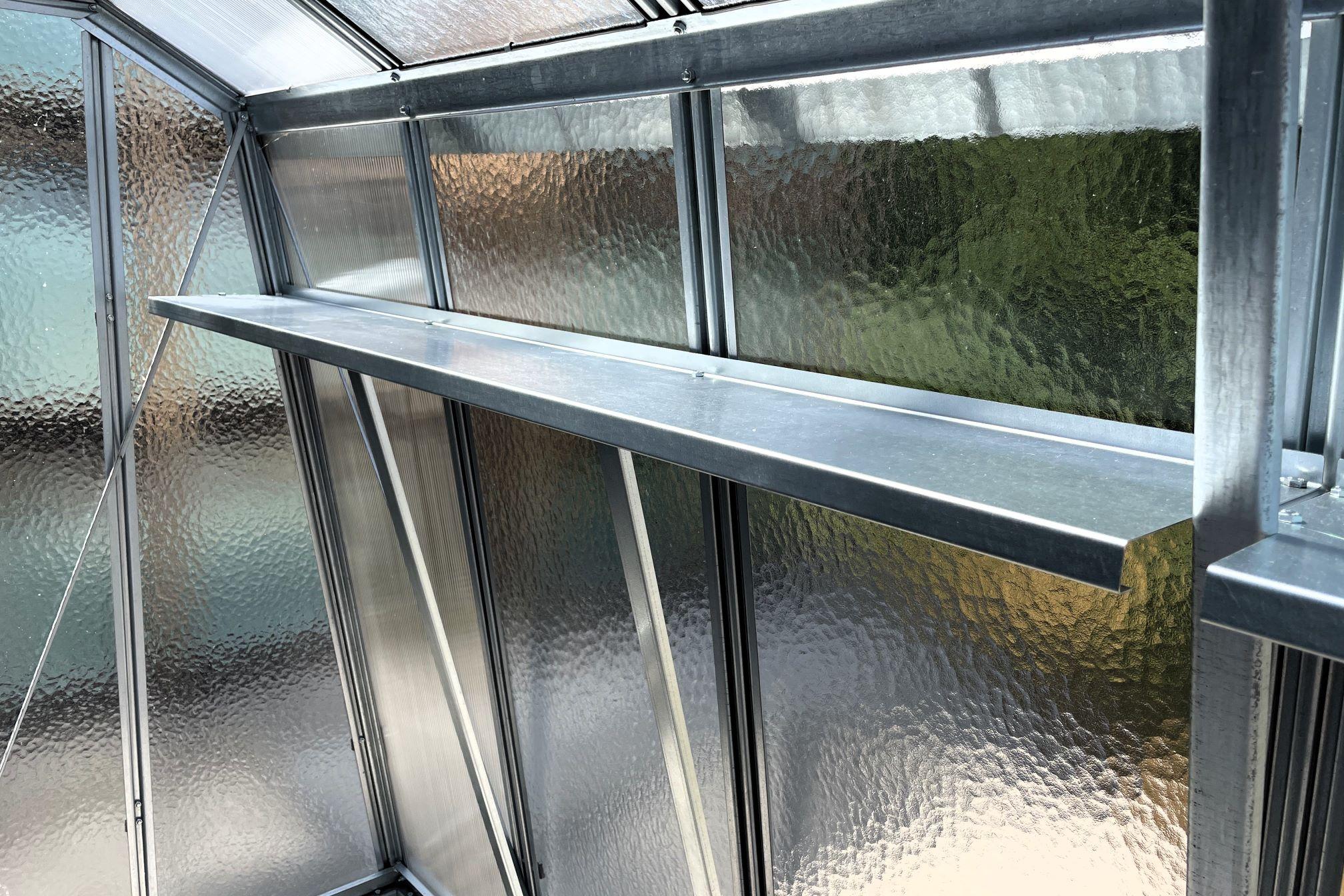 Obsah balenia: plechová polica dĺžky 1 m (1 ks), podpery (2 ks), umiestnenie police na vnútornej stene skleníka; len pre model Viva V6/3.