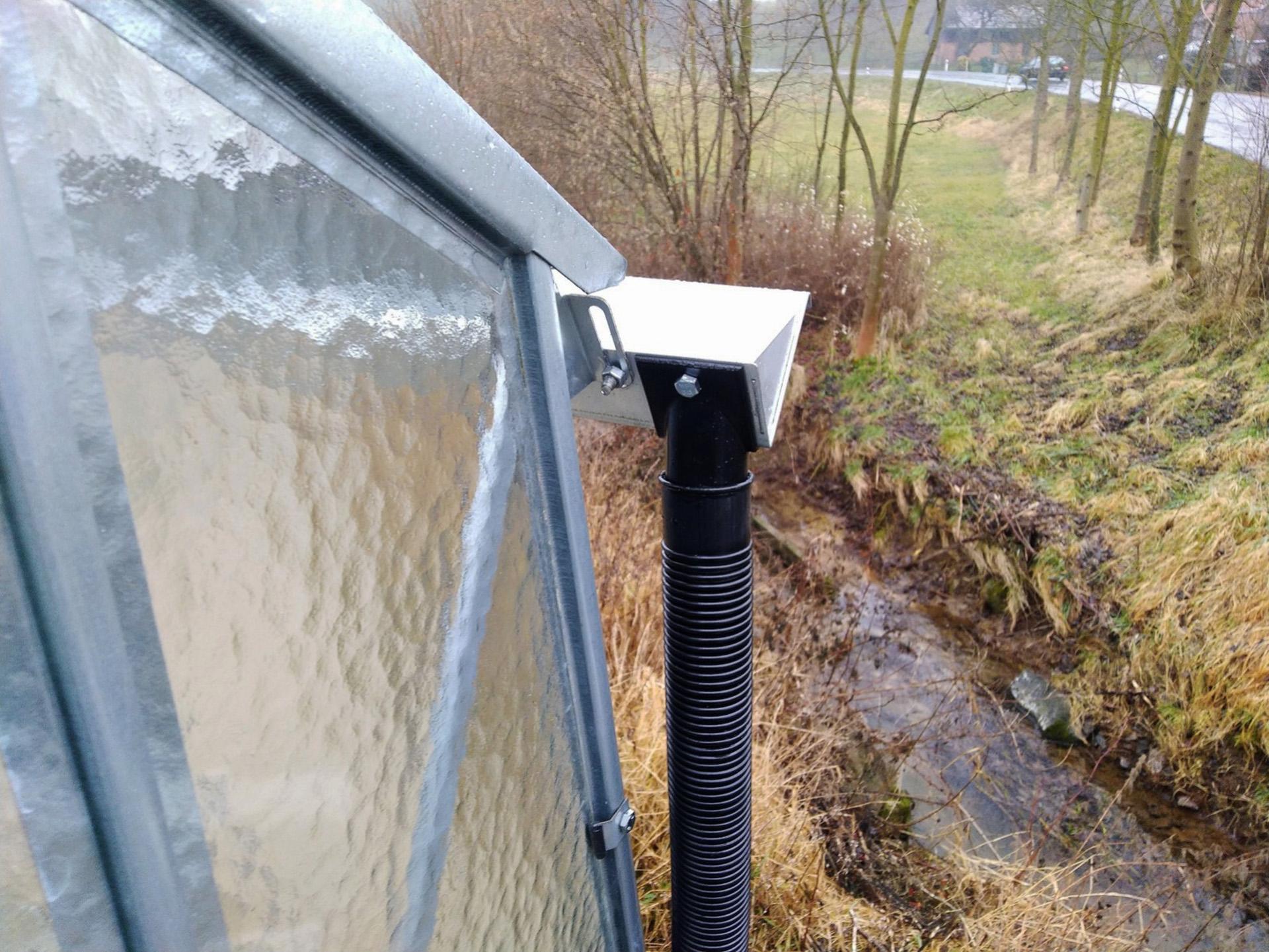 Rynny (para = dla prawej i lewej strony szklarni) do szklarni VIVA V7/3 w komplecie z rurami spustowymi z tworzywa sztucznego i wężami 1,5 m.