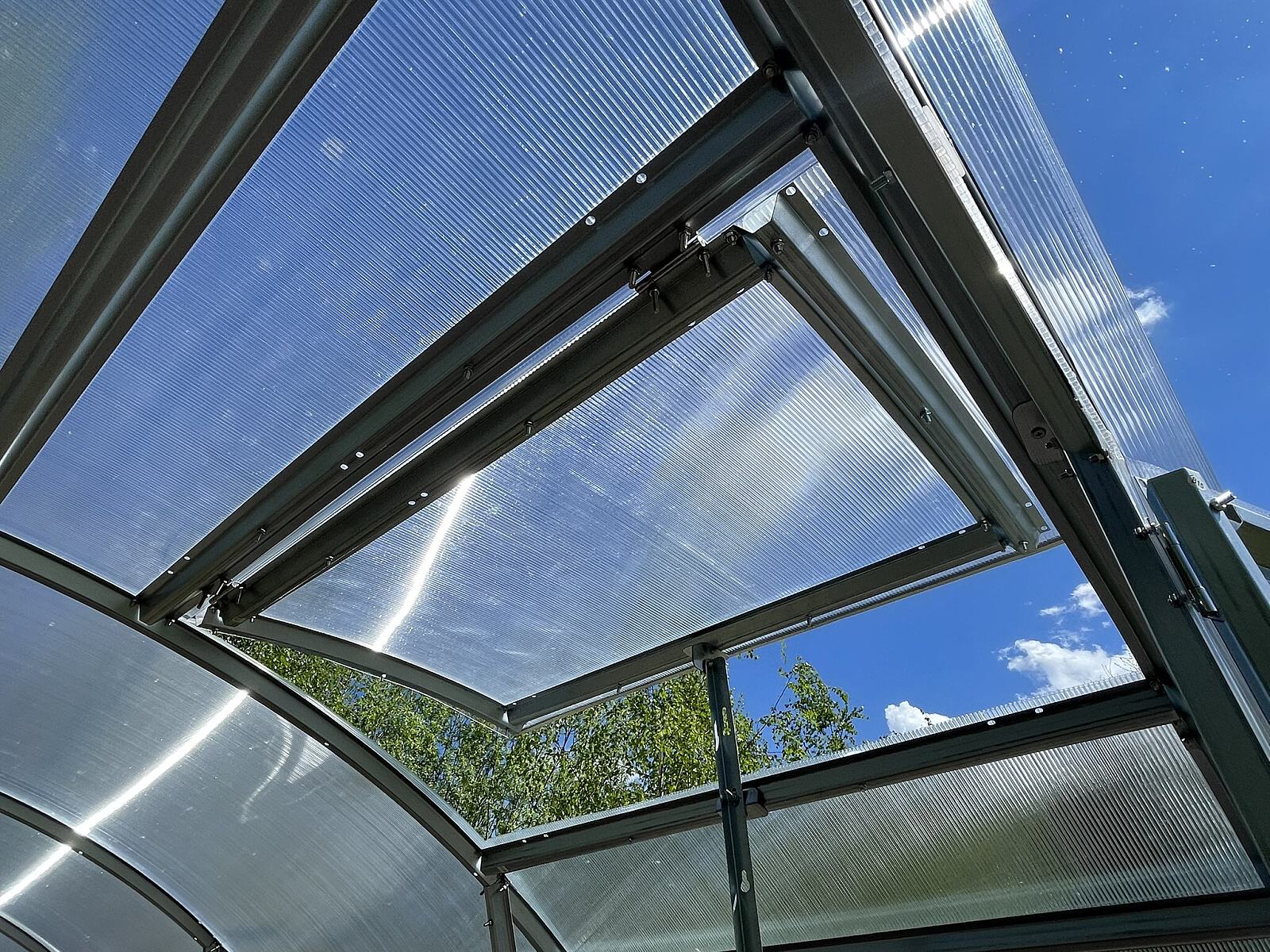 - szklarnia wykonana jest z profili stalowych, które są o 10 mm szersze niż dotychczas (szerokość wzrosła z 45 mm do 55 mm)