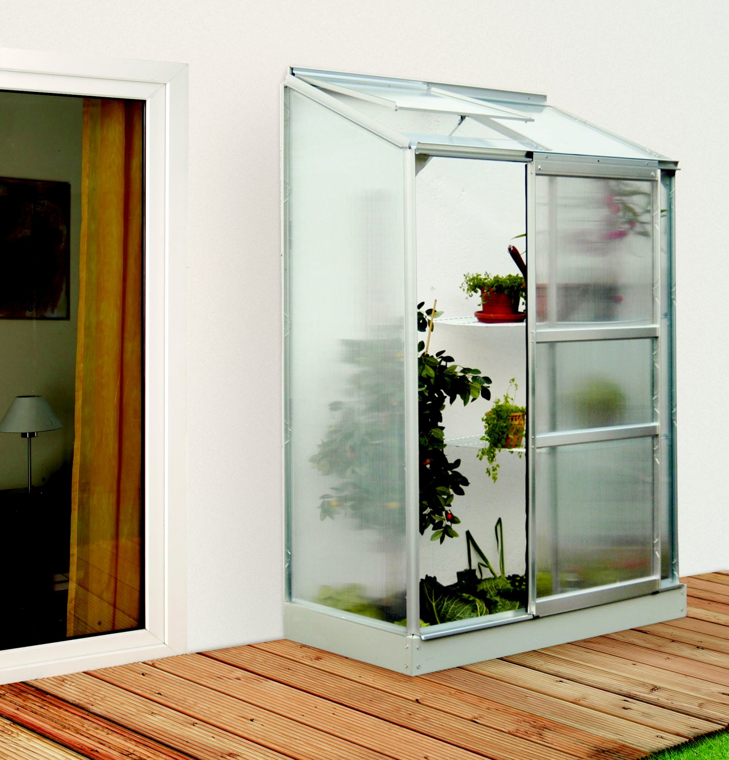 Szklarnia jest przeznaczona do montażu na ścianie – tylna ściana nie jest częścią konstrukcji.