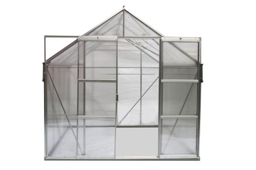 Zawartość opakowania to dwuskrzydłowe drzwi przesuwne (sz x w = 1,22 x 1,91 m), profile AL, przeszklenie, 4x okno dachowe wentylacyjne otwierane ręcznie, wszystkie mocowania. Szklarnię można zbudować np. na wymurówce ceglanej lub na podłożu z blachy ocynkowanej. W przypadku budowy bez podłoża zalecamy dokupienie podstawy. Istnieje możliwość zakupu szeregu akcesoriów do szklarni - półki, stojaki, dodatkowa wentylacja okien dachowych i bocznych, automatyczne otwieracze do tych okien, zestawy rynnowe, termometry, higrometry.